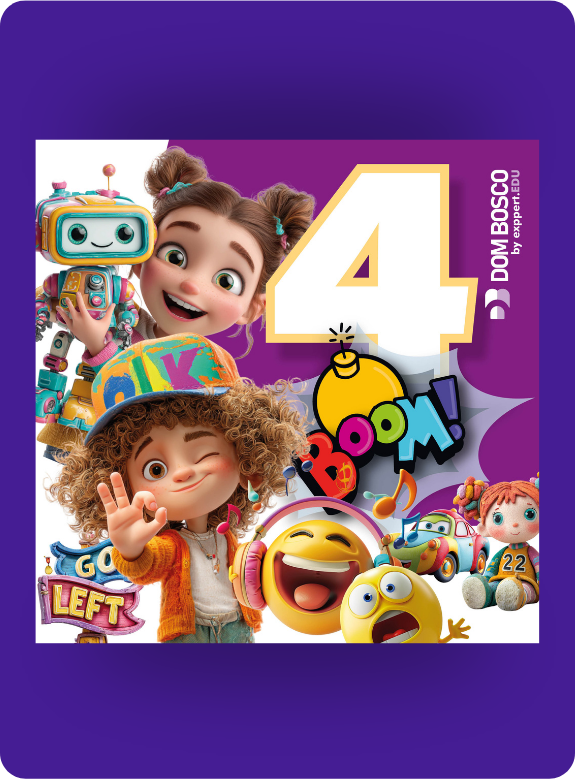 No 4º ano, o ensino de inglês se conecta ao universo da tecnologia, da criatividade e da resolução de problemas, fortalecendo as habilidades comunicativas e digitais.